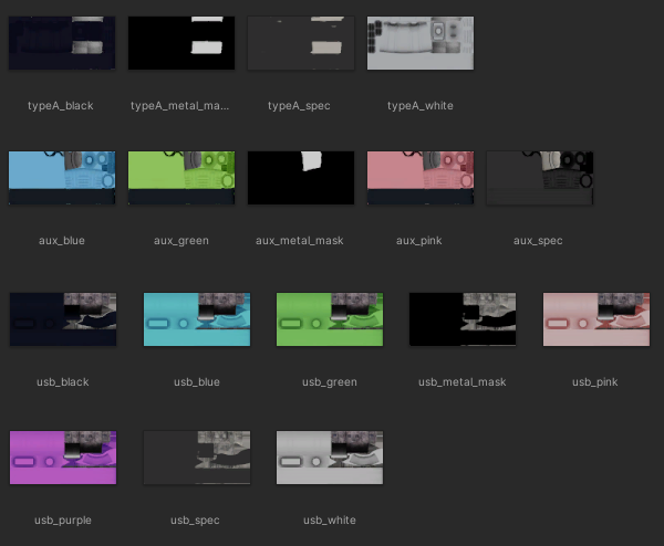 Aux 1,368Δ | Type A 2,308Δ | USB 1,110Δ | Unity package + FBX and textures